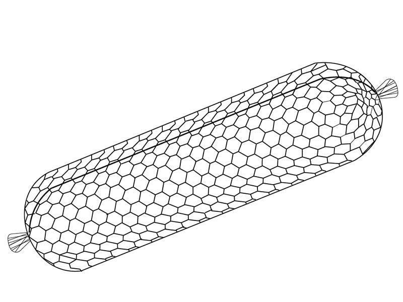 Sack gabions are cylindrical baskets with double twisted hexagonal woven steel wire mesh.